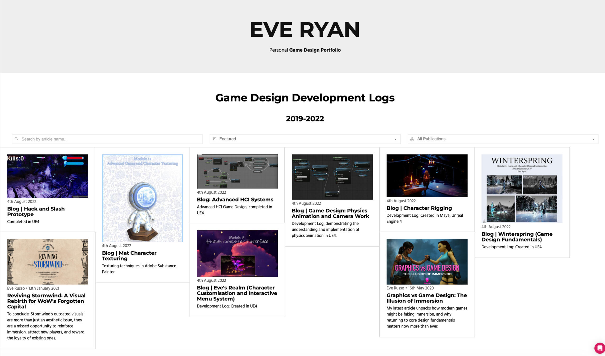 Having worked 3+ years in the video game industry as Game Designer, Eve has contributed to many high profile AAA projects during her time at the highly regarded outsource studio Black Shamrock, A Virtuos Studio in Dublin, and Cloud Imperium Games in Manchester.Eve's impact in the games industry was recognised in November 2025 when she was awarded an Ambassadorship with Women in Games.Qualifications:
